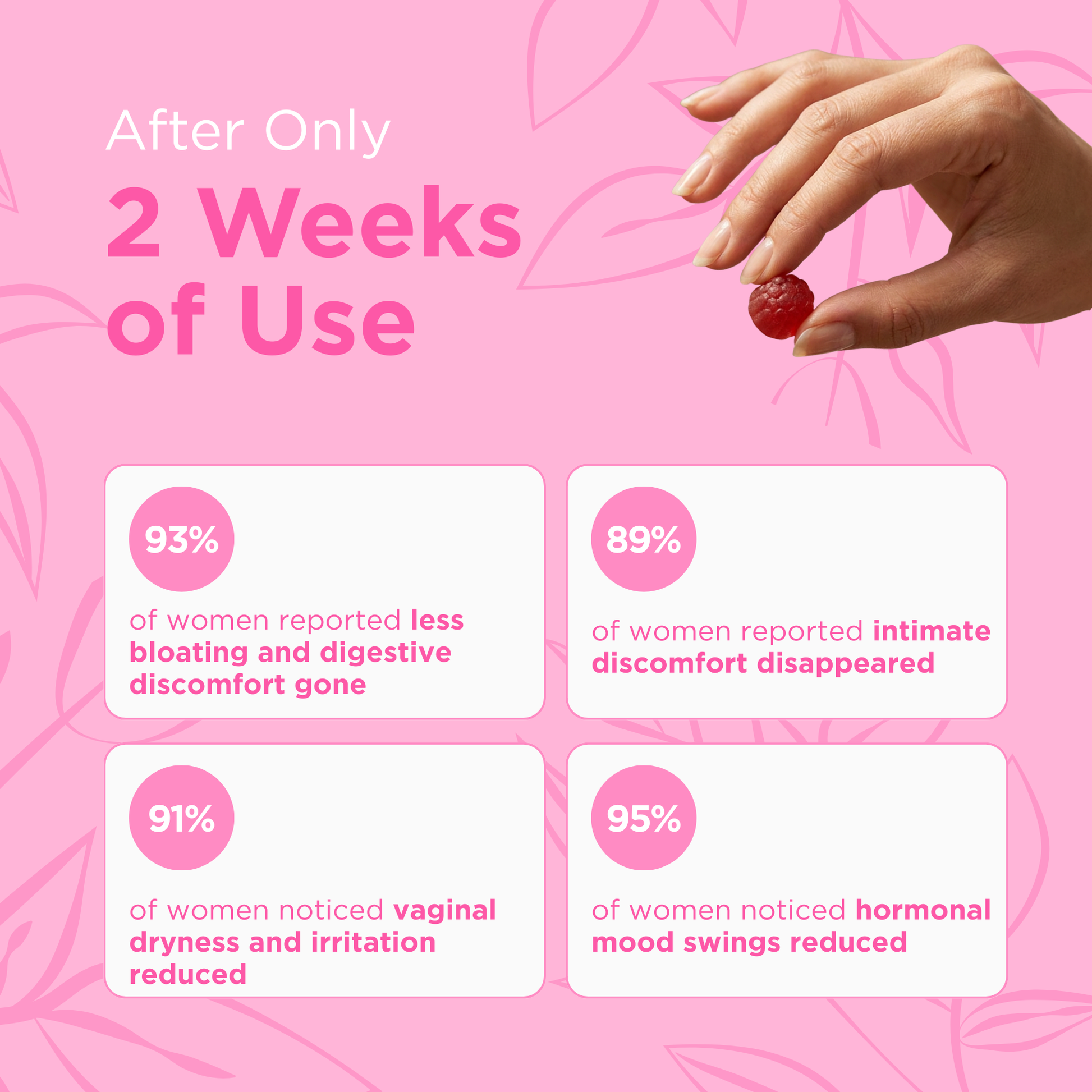 Like all wellness goals, consistency is everything. Two gummies a day keeps the good bacteria active and your gut, hormones, and intimate health supported over time. And because they taste great, you will actually look forward to taking them.