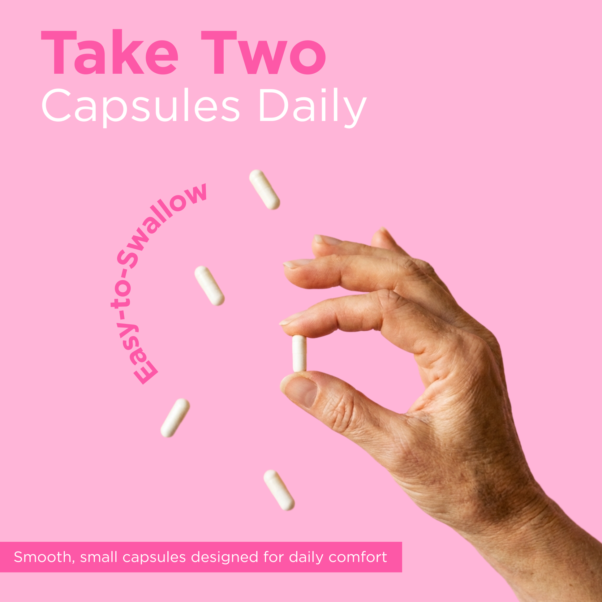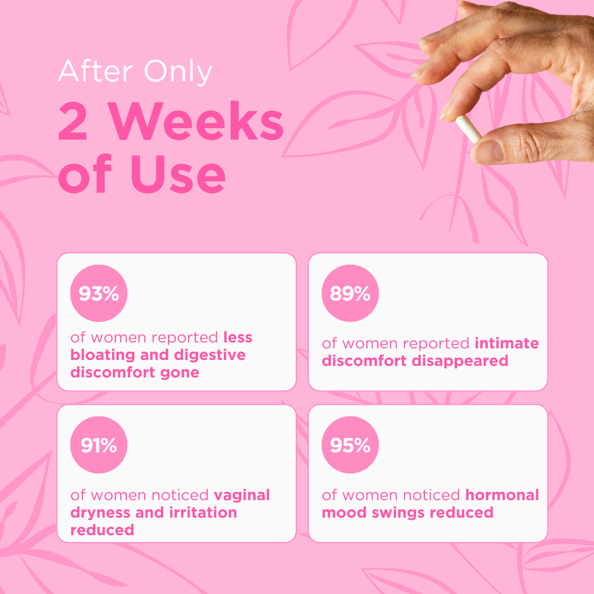 Like all wellness goals, consistency is everything. Two capsules a day keeps the good bacteria active and your gut, hormones, and intimate health supported over time.